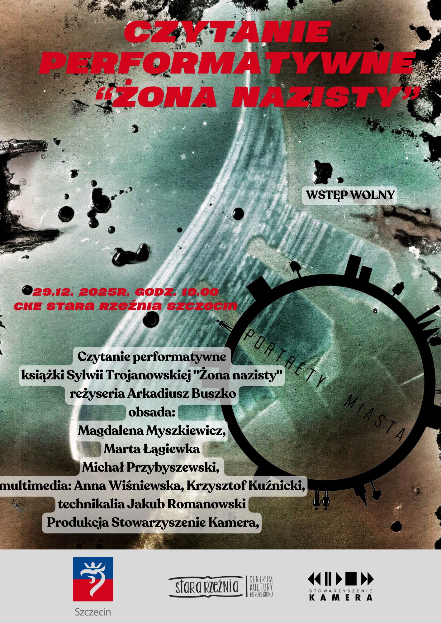 Wyjątkowe czytanie performatywne książki Sylwii Trojanowskiej „Żona nazisty”. Za reżyserię odpowiada Arkadiusz Buszko, a tekst ożywią na scenie aktorzy: Magdalena Myszkiewicz, Marta Łągiewka i Michał Przybyszewski. Wydarzeniu towarzyszyć będą autorskie wizualizacje Anny Wiśniewskiej i Krzysztofa Kuźnickiego.